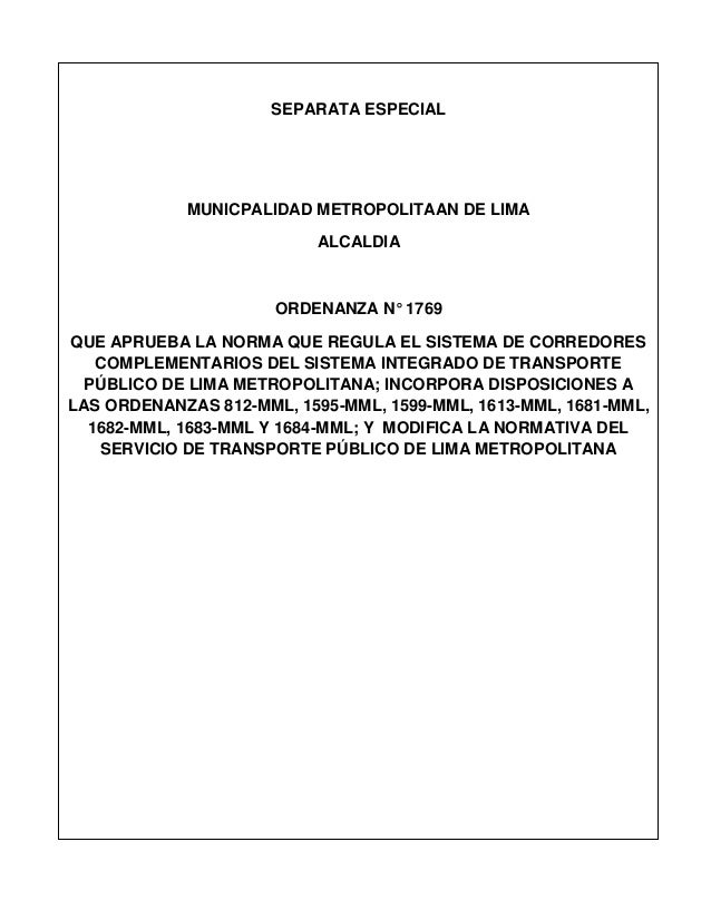 Ordenanza Municipal Lima 1769 2014 Reforma Del Transporte